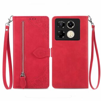 Για Infinix Σημείωση 40 Pro 4G ανάγλυφο λουλούδι φερμουάρ δερμάτινη θήκη τηλεφώνου (κόκκινο)