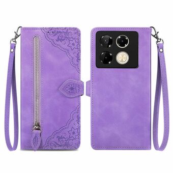 Για Infinix Σημείωση 40 Pro 4G ανάγλυφο λουλούδι φερμουάρ δερμάτινη θήκη τηλεφώνου (μωβ)