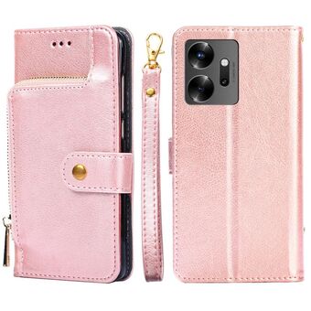 Για Infinix Hot 20i φερμουάρ τσάντα δερμάτινη θήκη τηλεφώνου (Rose Gold)