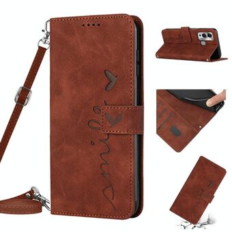 For Infinix Hot 12 Play Skin Feel Heart Pattern Leather Phone Case with Lanyard(Brown)