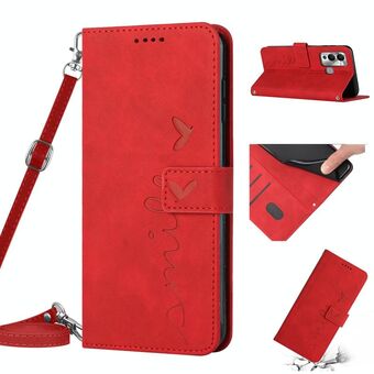 For Infinix Hot 12 Play Skin Feel Heart Pattern Leather Phone Case with Lanyard(Red)