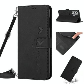 For Infinix Hot 12 Play Skin Feel Heart Pattern Leather Phone Case with Lanyard(Black)