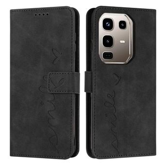 For Infinix Note 50x Skin Feel Heart Embossed Leather Phone Case with Long Lanyard(Black)