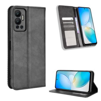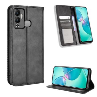 Για Infinix Hot 12 Play Μαγνητική πόρπη ρετρό υφή δερμάτινη θήκη τηλεφώνου (μαύρο)