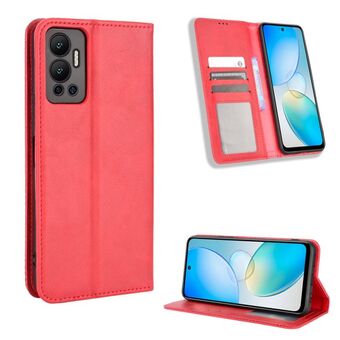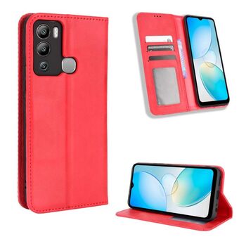 Για Infinix Hot 12 Play Μαγνητική πόρπη ρετρό υφή δερμάτινη θήκη τηλεφώνου (κόκκινο)