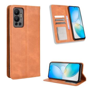 Για Infinix Hot 12 Play Μαγνητική πόρπη ρετρό υφή δερμάτινη θήκη τηλεφώνου (καφέ)