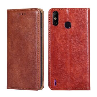 Για το Infinix Hot 9 / Note 7 Lite X655C Gloss Oil Solid Color Μαγνητική δερμάτινη θήκη τηλεφώνου (καφέ)