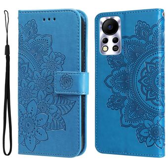 Για Infinix Hot 11S NFC 7-πέταλο λουλούδια ανάγλυφο Flip υπόθεση τηλεφώνου δέρμα (μπλε)