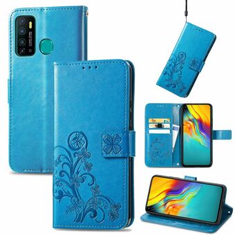 Για το Infinix Hot 9 Four-leaf Clasp ανάγλυφη αγκράφα Κινητό τηλέφωνο προστασία δερμάτινη θήκη με κορδόνι & υποδοχή για κάρτες & πορτοφόλι & βραχίονα λειτουργία (μπλε)