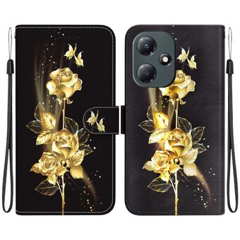 For Infinix Hot 30 Play X6835 Crystal Texture Colored Drawing Leather Phone Case(Gold Butterfly Rose)