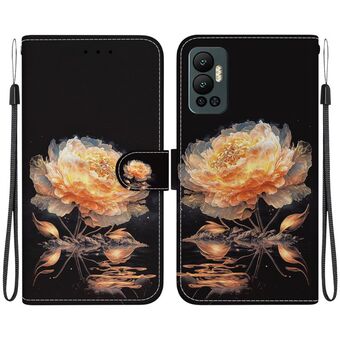 For Infinix Hot 12 Crystal Texture Colored Drawing Leather Phone Case(Gold Peony)
