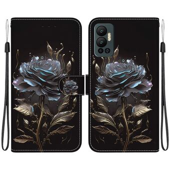 For Infinix Hot 12 Play Crystal Texture Colored Drawing Leather Phone Case(Black Rose)