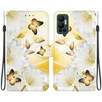 For Infinix Hot 12 Crystal Texture Colored Drawing Leather Phone Case(Gold Butterfly Epiphyllum)