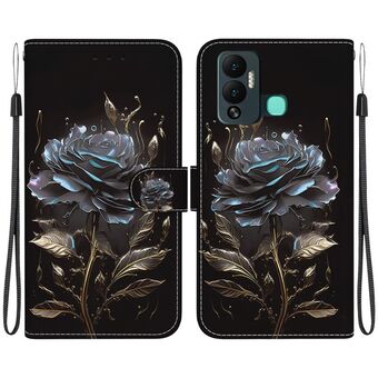 For Infinix Hot 12 Crystal Texture Colored Drawing Leather Phone Case(Black Rose)