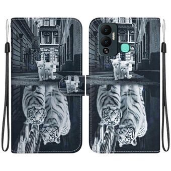 For Infinix Hot 12 Play Crystal Texture Colored Drawing Leather Phone Case(Cat Tiger Reflection)