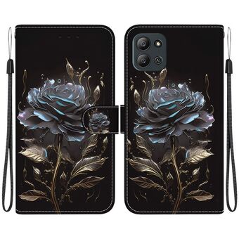 For Infinix Hot 11 2022 Crystal Texture Colored Drawing Leather Phone Case(Black Rose)