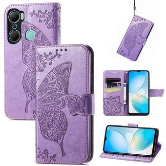 For Infinix Hot 12i Butterfly Love Flower Embossed Leather Phone Case(Purple)