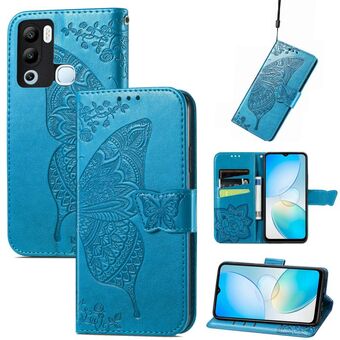 For Infinix Hot 12i Butterfly Love Flower Embossed Leather Phone Case(Blue)