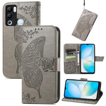 For Infinix Hot 12i Butterfly Love Flower Embossed Leather Phone Case(Gray)