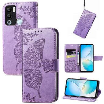 For Infinix Hot 12 Pro Butterfly Love Flower Embossed Leather Phone Case(Lavender)
