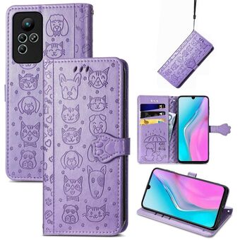 For Infinix Note 11 Cute Cat and Dog Embossed Leather Phone Case(Purple)