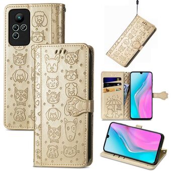 For Infinix Note 11 Cute Cat and Dog Embossed Leather Phone Case(Gold)