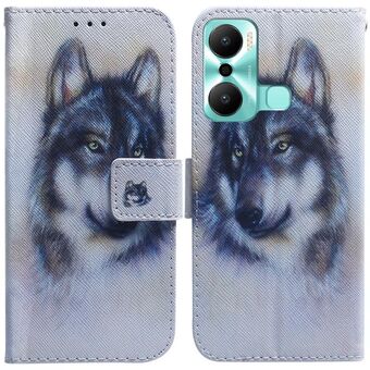 For Infinix Hot 20 Play Coloured Drawing Flip Leather Phone Case(White Wolf)