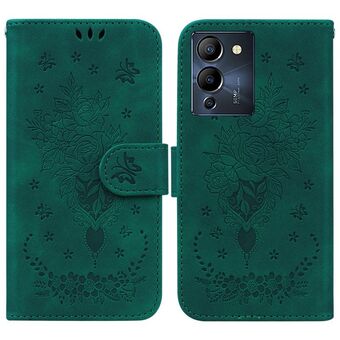 For Infinix Hot 11 2022 Butterfly Rose Embossed Leather Phone Case(Green)