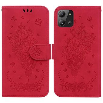 For Infinix Hot 11 2022 Butterfly Rose Embossed Leather Phone Case(Red)