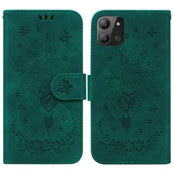 For Infinix Note 12 G96/X670 Butterfly Rose Embossed Leather Phone Case(Green)