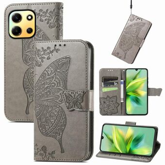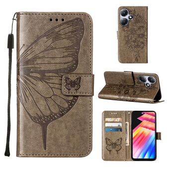 For Infinix Hot 30 Play / X6835 Embossed Butterfly Leather Phone Case(Grey)