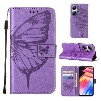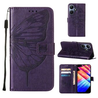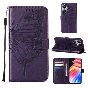 For Infinix Hot 30 Play / X6835 Embossed Butterfly Leather Phone Case(Dark Purple)