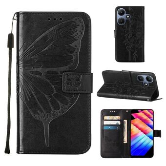 For Infinix Hot 30 Play / X6835 Embossed Butterfly Leather Phone Case(Black)