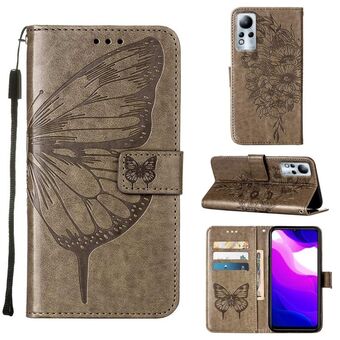 For Infinix Note 11i Embossed Butterfly Leather Phone Case(Grey)