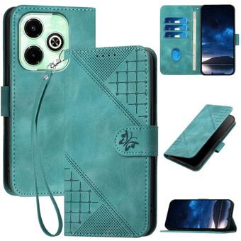 For Infinix Smart 8 Pro 4G Grid Butterfly Embossed Pattern Leather Phone Case with Lanyard(Black)
