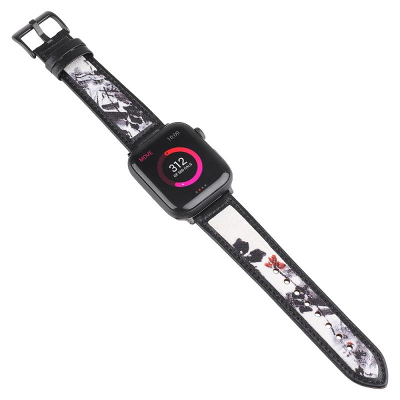 Λουρί Ρολογιού Δερμάτινο με Μελάνι για Apple Watch Ultra 49mm & Watch Ultra 2 49mm / Series 9 & 8 & 7 45mm / SE 3 & SE 2 & 6 & SE & 5 & 4 44mm / 3 & 2 & 1 42mm (Μαύρο)