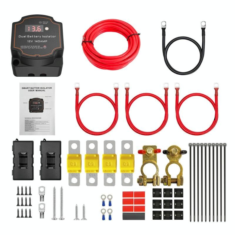 IP68 12V 140A Έξυπνος Διαχωριστής Μπαταριών Αυτοκινήτου με Ψηφιακό Βολτόμετρο, 3m Set