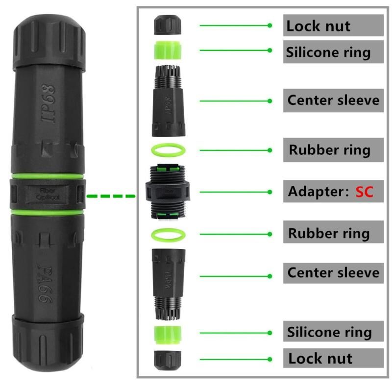 5. The housing is made of durable nylon PA66, with high-performance ceramic ferrules, secured by silicone and rubber seals, ensuring strong waterproof capabilities.
