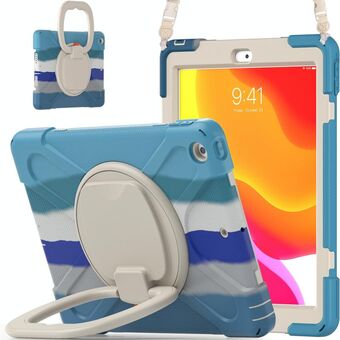 For Apple iPad 10.2 2021 / 2020 / 2019 Colorful Silicone + PC Protective Case with Holder & Shoulder Strap(Blue)