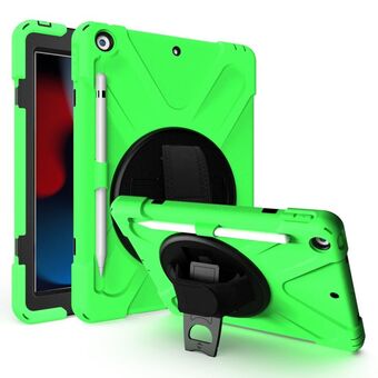 For iPad 10.2 EVA + PC Flat Protective Shell with 360 ° Rotating Bracket(Grass Green+Rose Red)