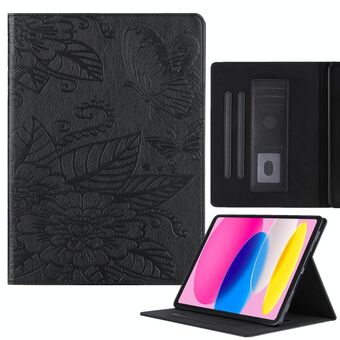 For iPad 2025 / 2022 Butterfly Love Flower Embossed Leather Smart Tablet Case(Black)