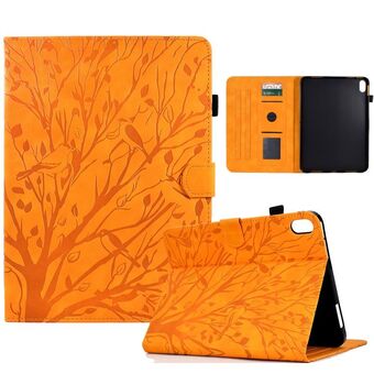 For iPad 10.9 2022 / 2025 Fortune Tree Pressure Flower PU Tablet Case with Wake-up / Sleep Function(Khaki)