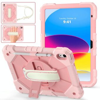 For iPad 2025 / 2022 Contrast Color Robot Shockproof Silicon + PC Tablet Protective Case with Crossbody Rope(Colorful Pink)