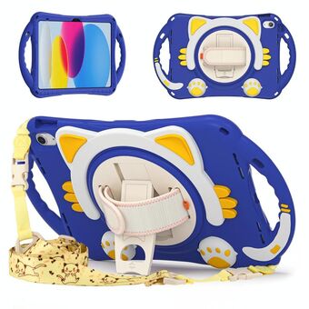 For iPad 2025 / 2022 Cute Cat King Kids Shockproof Silicone Tablet Case(Dark Blue)