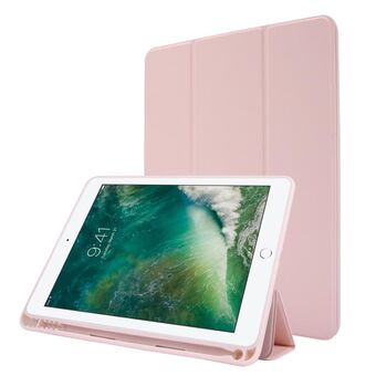 Skin Feel Pen Holder Tri-fold Tablet Leather Case For iPad Air 2 / Air / 9.7 2018 / 9.7 2017(Pink)