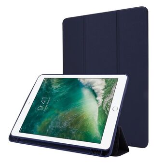 Skin Feel Pen Holder Tri-fold Tablet Leather Case For iPad Air 2 / Air / 9.7 2018 / 9.7 2017(Dark Blue)