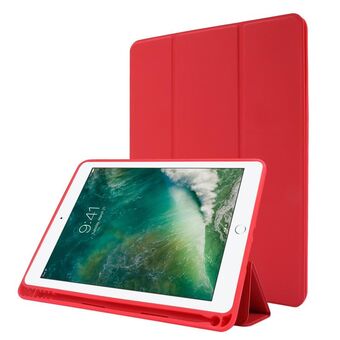 Skin Feel Pen Holder Tri-fold Tablet Leather Case For iPad Air 2 / Air / 9.7 2018 / 9.7 2017(Red)