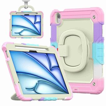 For iPad Air 11 2025 / 2024 Handle Silicone Hydric PC Tablet Case with Shoulder Strap(Rainbow Pink)