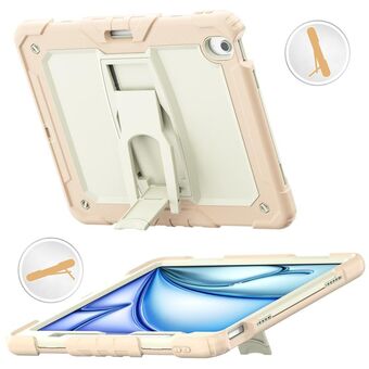 For iPad Air 13 2025 / 2024 Silicone Hydric PC Tablet Case with Shoulder Strap & Holder(Beige Rose Gold)