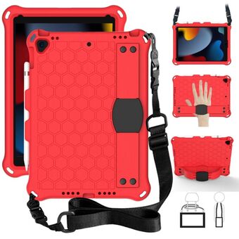 For iPad Air 2019 10.5 Honeycomb Design EVA + PC Four Corner Anti Falling Flat Protective Shell With Straps(Red+Black)